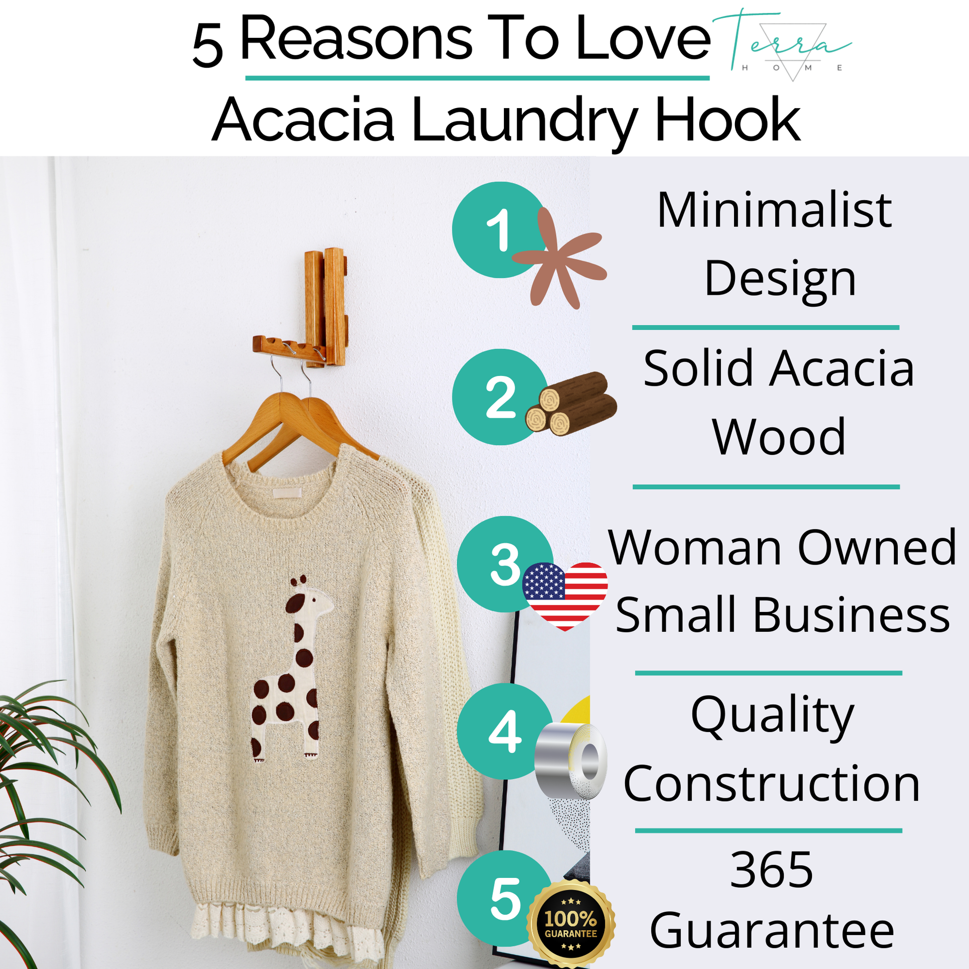 - Wall Mount Clothes Rack - Crafted from durable Acacia wood, this rack is perfect for organizing clothes, towels, and accessories while adding a rustic, elegant touch to your laundry room.