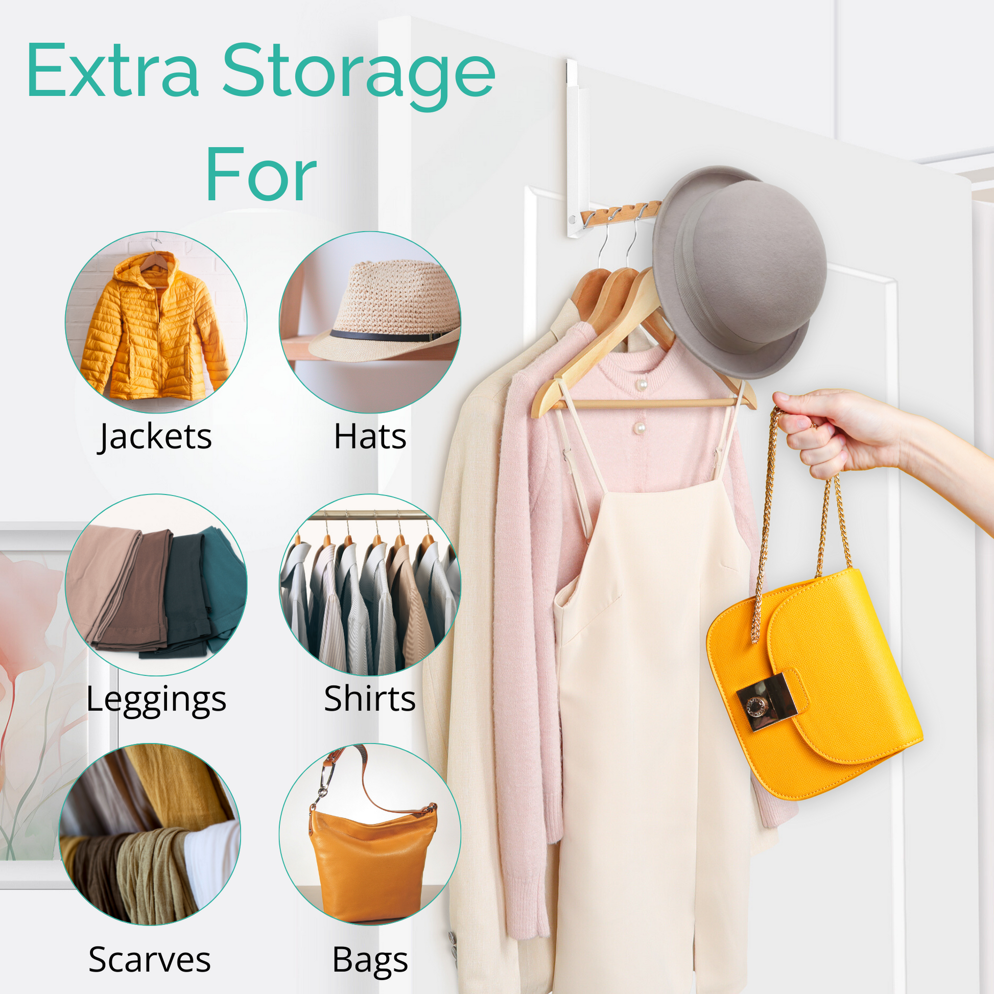 - Over the Door Hook Efficiency: Maximize living space with an over-the-door hanging rack, ideal for orderly storage of coats, towels, and essentials, keeping your home clutter-free. Try our over door coat rack!