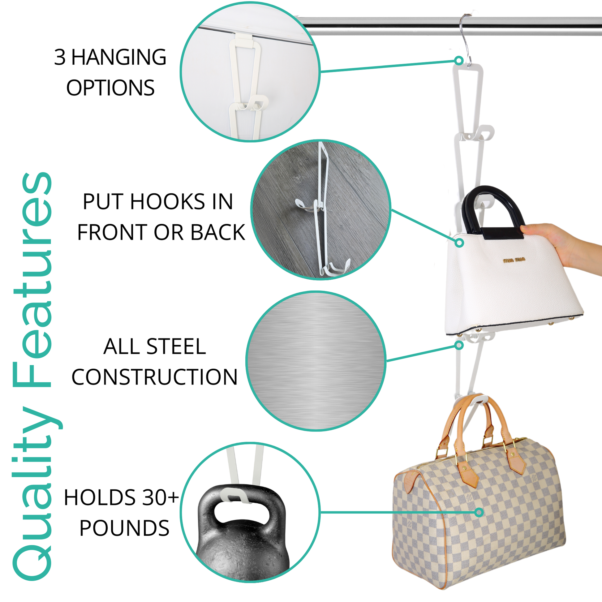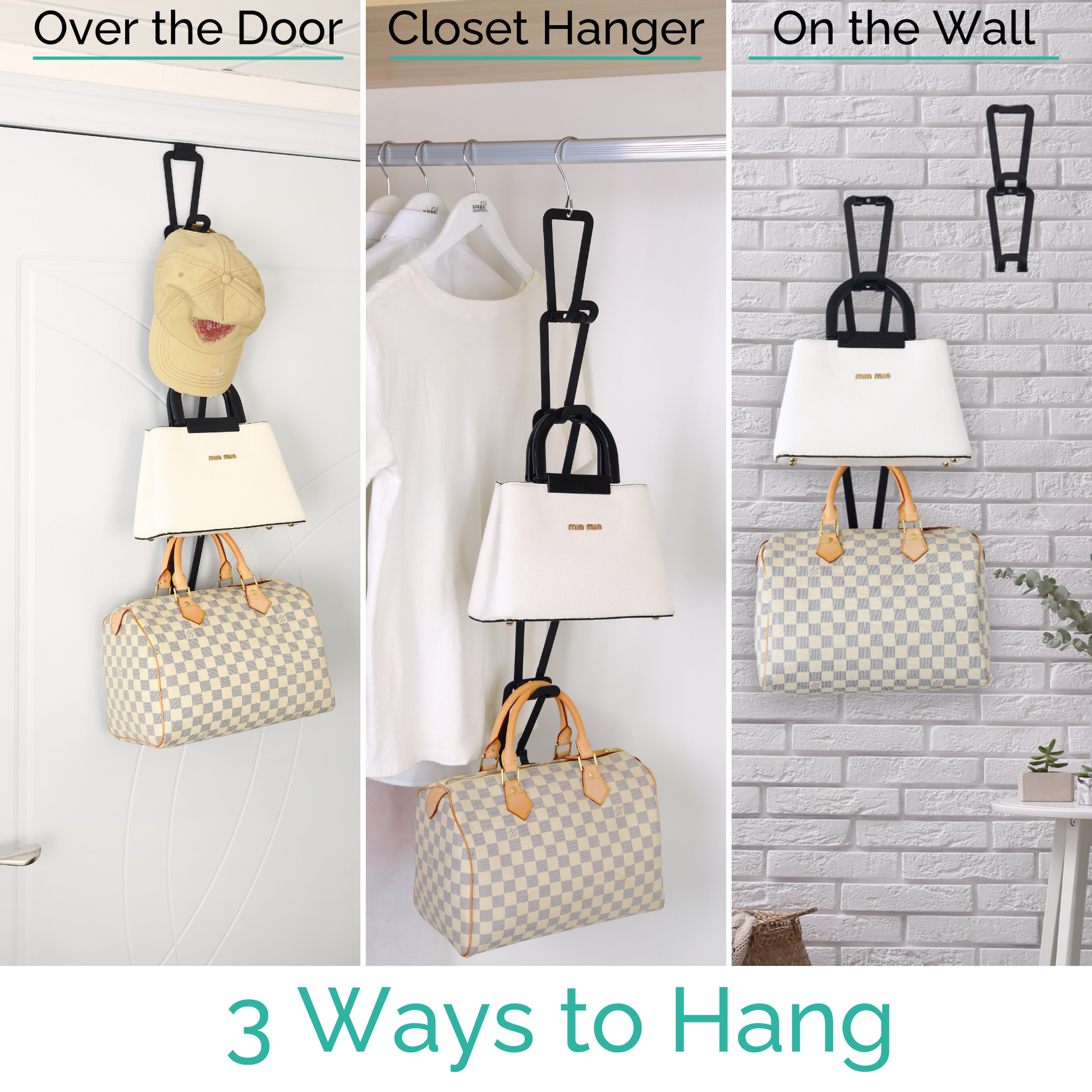 - Practical and improved design purse wall organizer: Use our product as a purse wall organizer to keep your purses in a neat and orderly fashion. This wall purse organizer can also be used as a bag hanger for door, adding to its practicality.